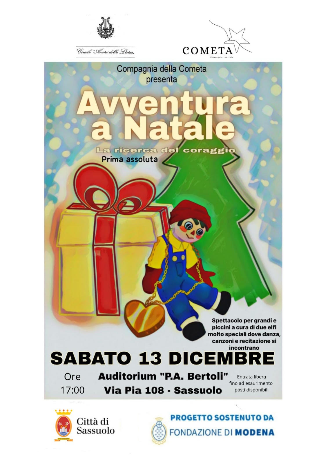Sabato 13 dicembre alle ore 17, all'Auditorium Bertoli