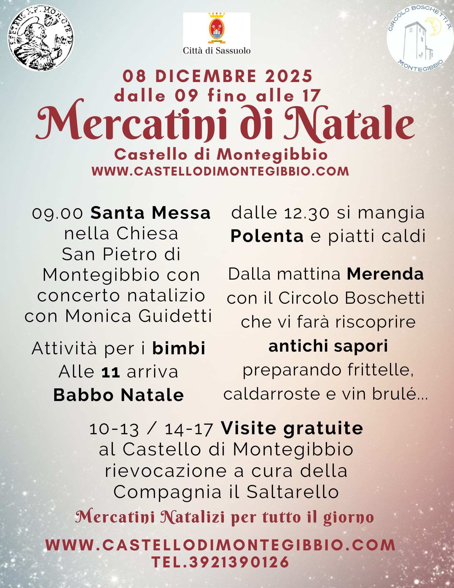 - Ore 9.00: Santa Messa nella Chiesa San Pietro di Montegibbio con concerto natalizio di Monica Guidetti