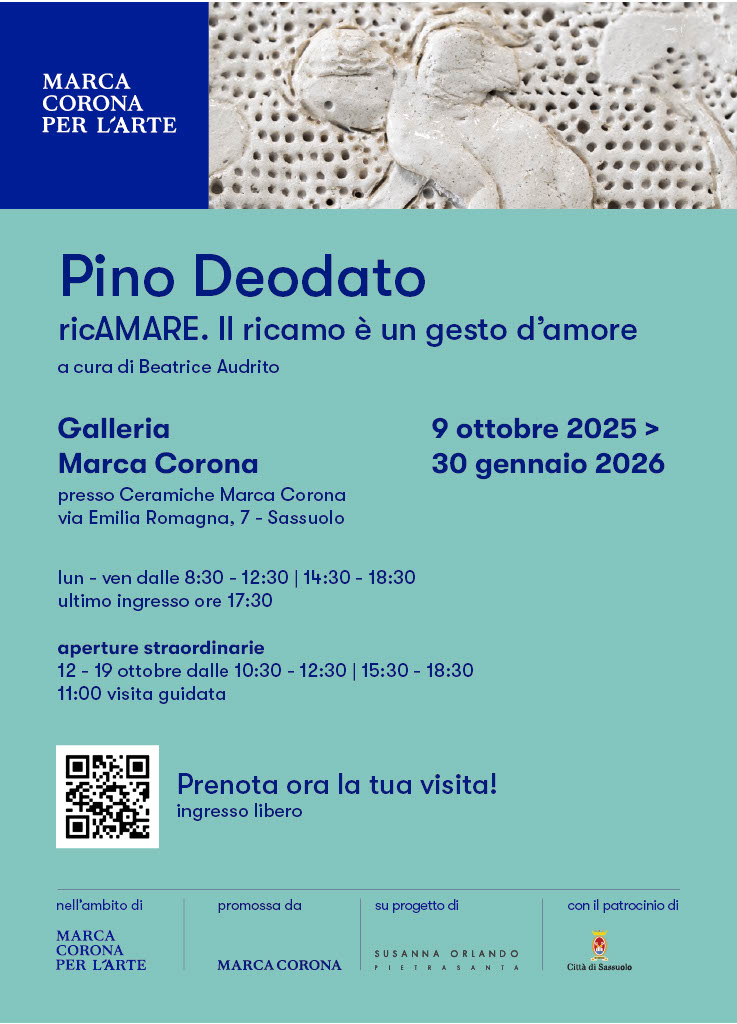 Il percorso espositivo prosegue all'interno di Galleria Marca Corona, il museo aziendale che racconta trecento anni di storia d'impresa, dove una raffinata selezione di opere storiche di Pino Deodato —realizzate in terracotta invetriata—, si misurano con la collezione di manufatti dell'azienda, in un gioco di forme e rimandi simbolici. Opere di grandi dimensioni che rievocano l'effetto del ricamo come La campana di Filippo, un omaggio a Filippo Brunelleschi, o la grande tavola imbandita de Il Pranzo nuziale di Botticelli, si affiancano a piccole sculture dipinte che raccontano di una civiltà perduta dove il protagonista è il mondo animale confinato su piccoli iceberg alla deriva come in come Adamo e Eva o I viandanti. Conclude il percorso museale L'ingegnere della luce, una grande tela dipinta a sottolineare la libertà espressiva di Pino Deodato: un artista che ha sviluppato il suo personale linguaggio passando dalla pittura alla scultura per raccontare la medesima storia. Una storia che parla di meraviglia, la meraviglia del creato.