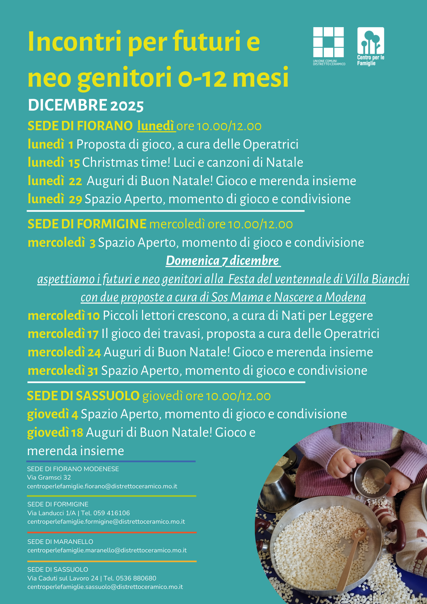 Incontri, giochi momenti di confronto del centro per le Famiglie.